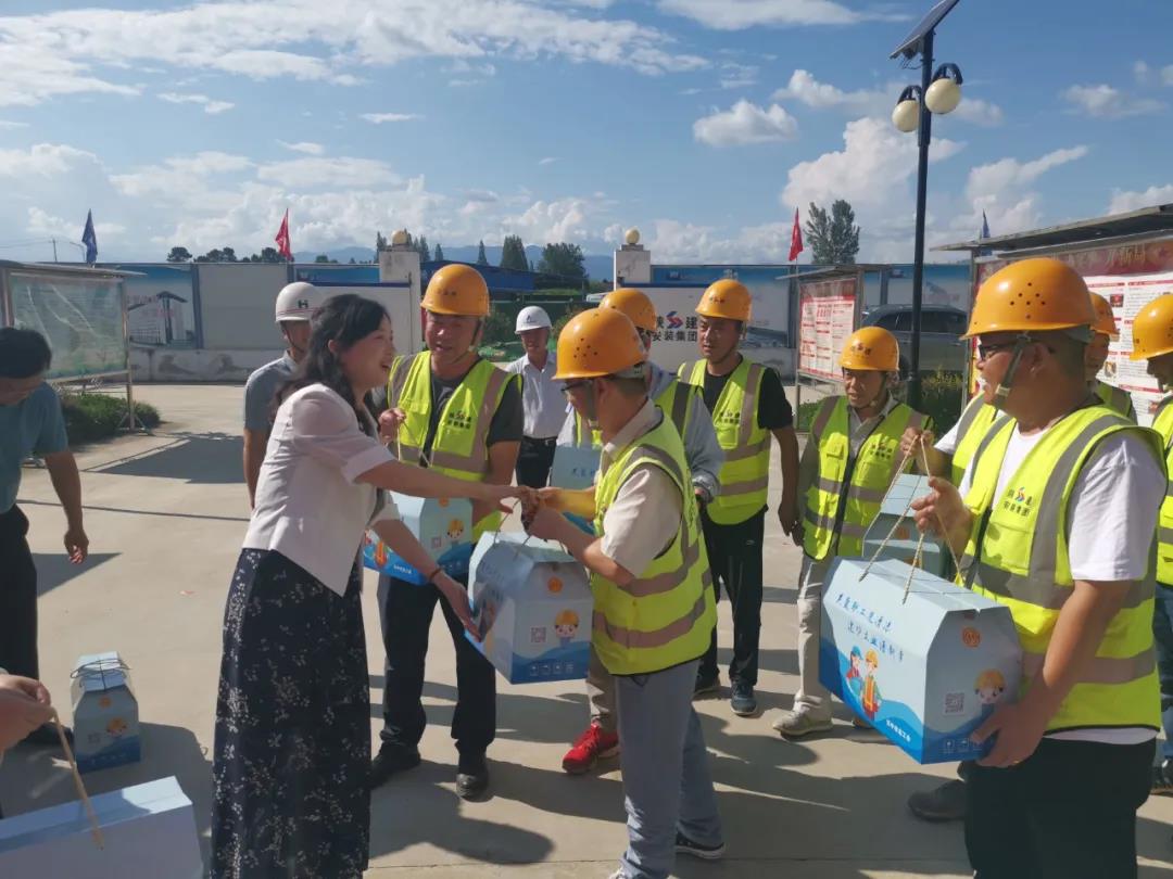 李曉媛主席將防暑禮品一一交到員工手中,與參建員工親切交談,感謝他們?yōu)榻ㄔO(shè)項(xiàng)目所做出的貢獻(xiàn)并仔細(xì)詢(xún)問(wèn)了大家的工作情況和身體狀況,對(duì)大家在炎炎夏日中堅(jiān)守崗位的工作態(tài)度和精神風(fēng)貌表示贊賞,隨后囑托大家要注意安全建設(shè)和防暑降溫,保重身體。